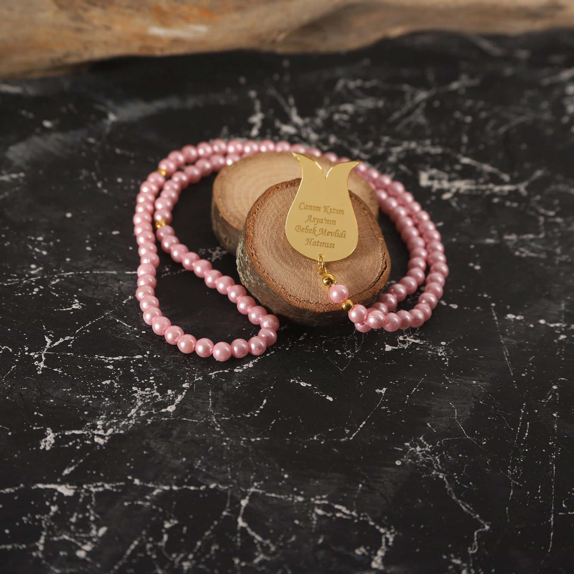 İsme Özel İnci Tesbih Pembe