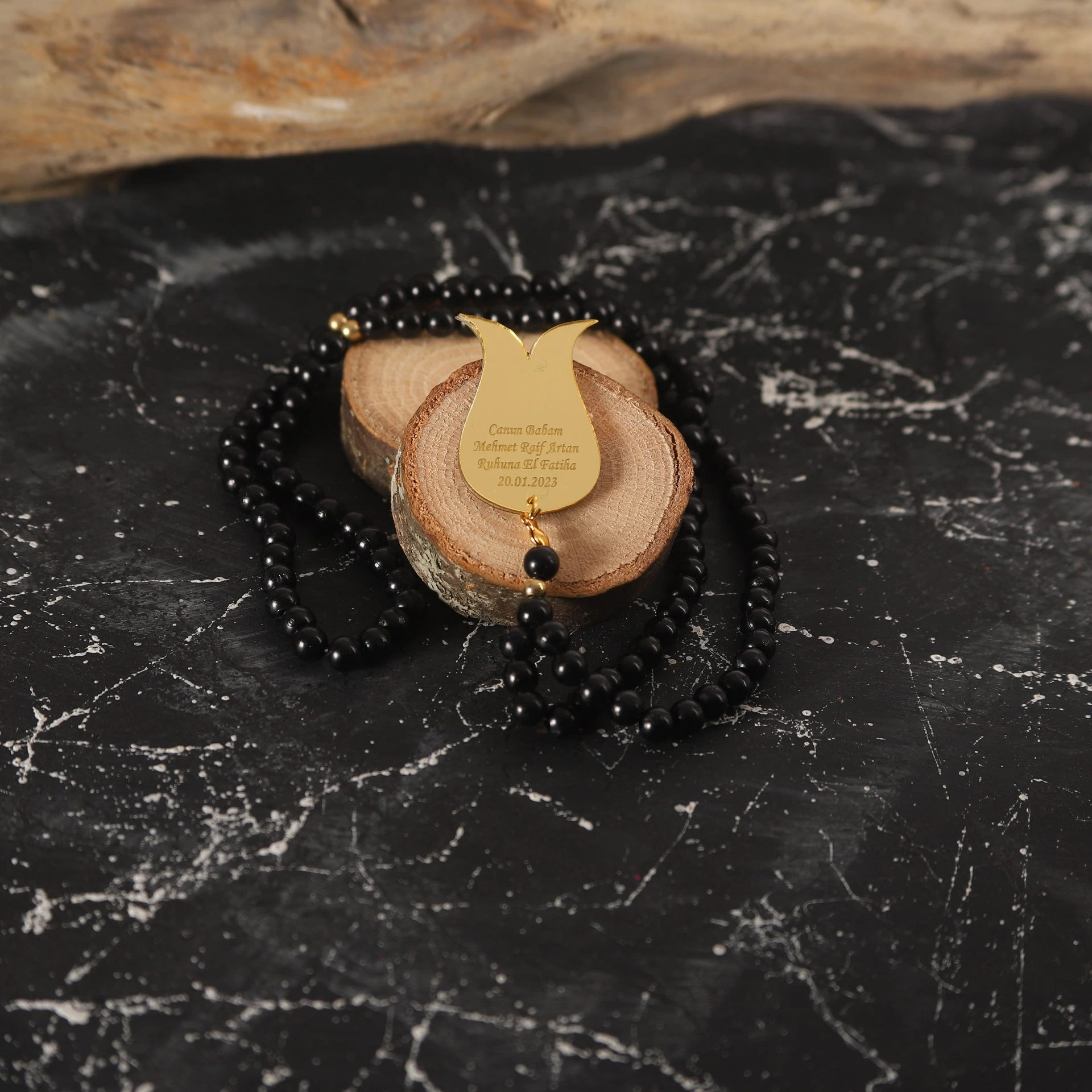 İsme Özel İnci Tesbih Siyah